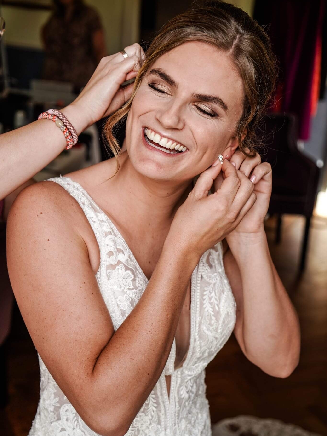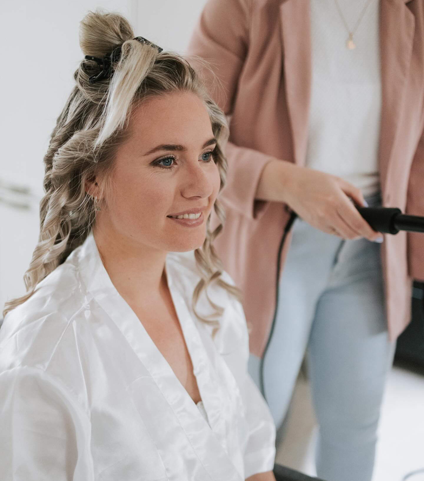 Op de dag zelf komen we naar je toe om de afgesproken bruidsmake-up en bruidskapsel bij je toe te passen. Wij gaan dan pas weg als jij er op je mooist uit ziet en helemaal klaar bent voor de grote dag!